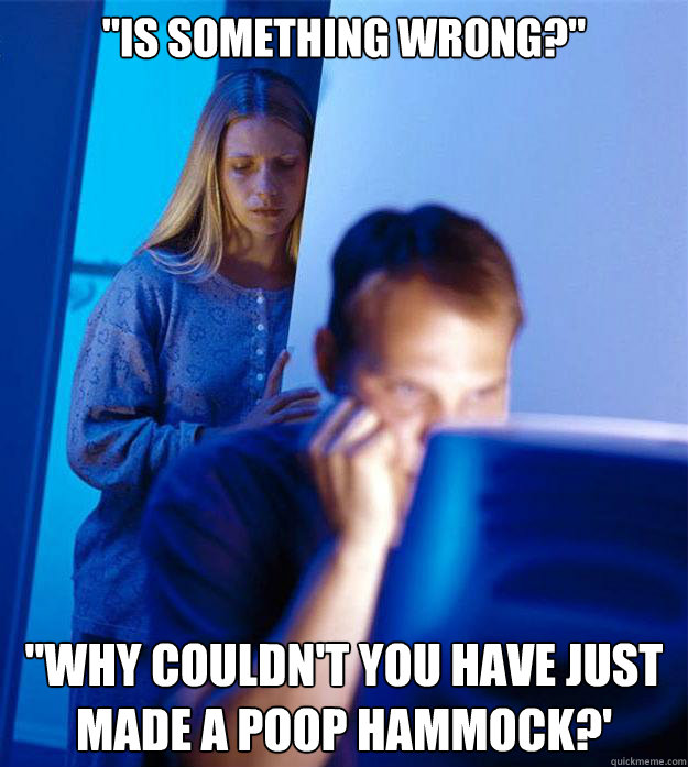 "Is something wrong?" "Why couldn't you have just made a poop hammock?'