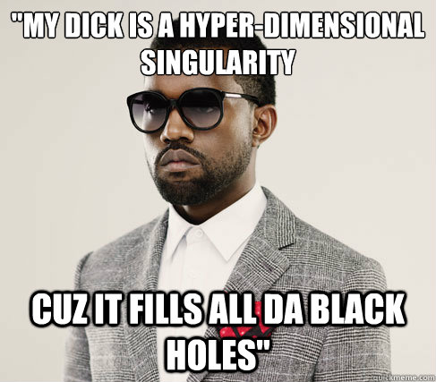 "My dick is a hyper-dimensional singularity cuz it fills all da black holes"
