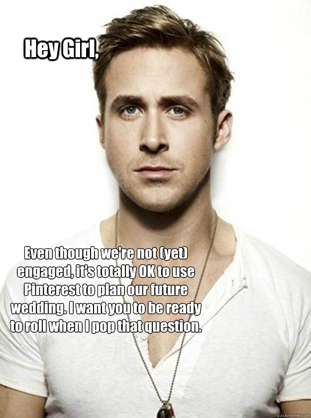 Hey Girl, Even though we're not (yet) engaged, it's totally OK to use Pinterest to plan our future wedding. I want you to be ready to roll when I pop that question.