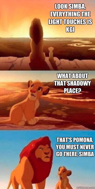look simba, everything the light touches is KGI what about that shadowy place? that's pomona, you must never go there, simba