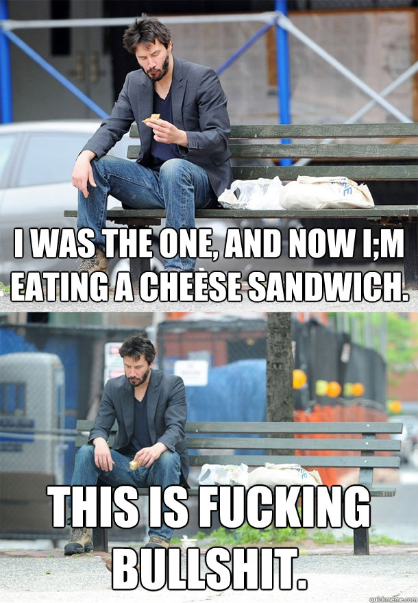 I was the one, and now I;m eating a cheese sandwich. THIS IS FUCKING BULLSHIT.