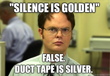 "Silence is golden" False. Duct tape is silver.