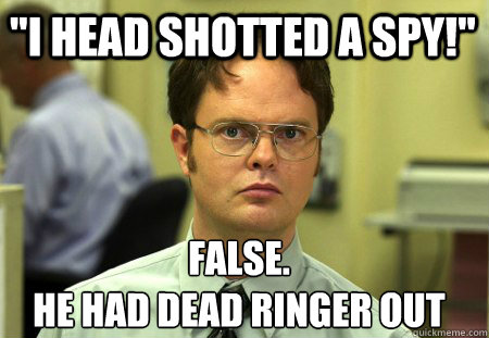 "I head Shotted a Spy!" False. He had Dead Ringer Out