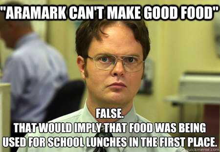 "Aramark can't make good food" False. that would imply that food was being used for school lunches in the first place.