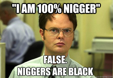 "I am 100% nigger" False. Niggers are black