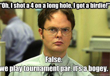 "Oh, I shot a 4 on a long hole, I got a birdie!" False. we play tournament par. it's a bogey.