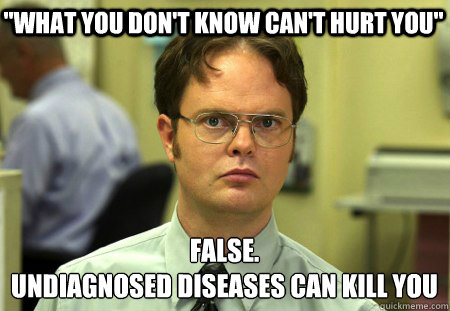 "what you don't know can't hurt you" False. Undiagnosed diseases can kill you