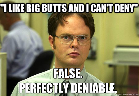 "I like big butts and I can't deny" False. Perfectly deniable.