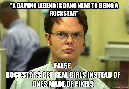 "a gaming legend is dang near to being a rockstar" False. rockstars get real girls instead of ones made of pixels