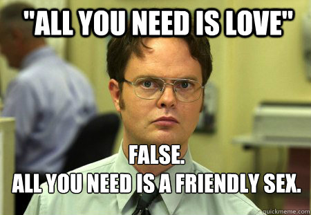 "All you need is love" FALSE. All you need is a friendly sex.