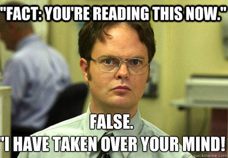 "Fact: You're reading this now." False. "I have taken over your mind!