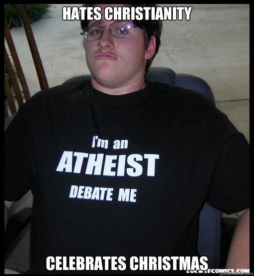 Makes fun of theists who think they have a monopoly on morality Thinks atheists have a monopoly on reason