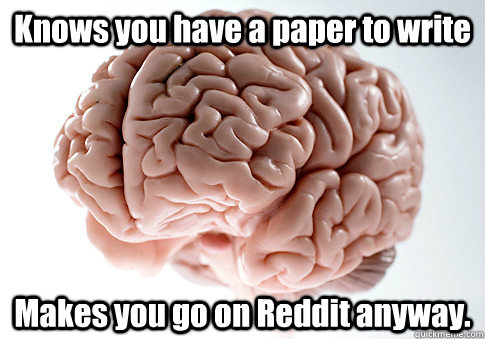 Knows you have a paper to write Makes you go on Reddit anyway.