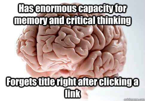 Has enormous capacity for memory and critical thinking Forgets title right after clicking a link