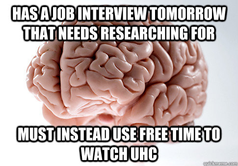 has a job interview tomorrow that needs researching for must instead use free time to watch UHC