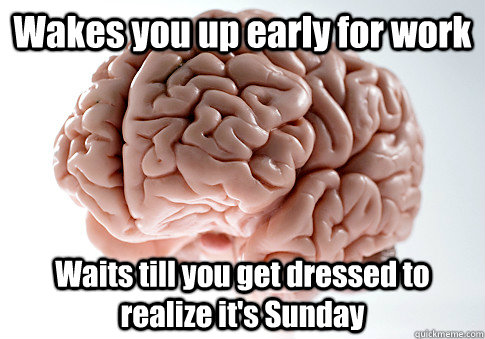 Wakes you up early for work Waits till you get dressed to realize it's Sunday