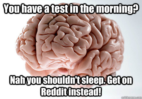 You have a test in the morning? Nah you shouldn't sleep. Get on Reddit instead!