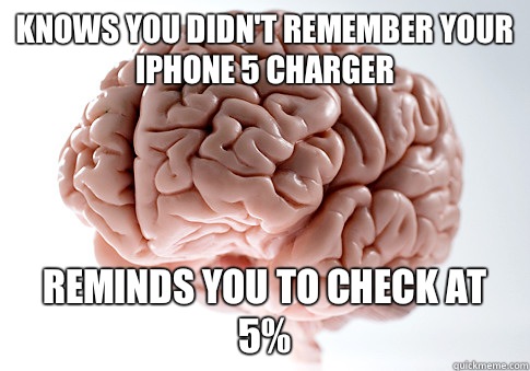 Knows you didn't remember your iPhone 5 charger reminds you to check at 5%