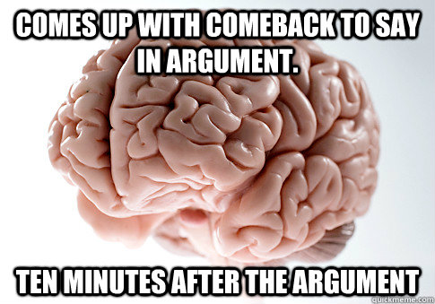 Comes up with comeback to say in argument. Ten minutes after the argument