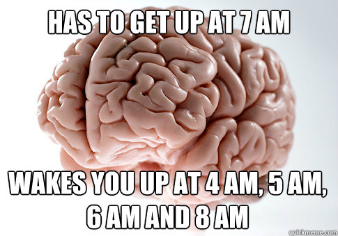 Has to get up at 7 AM Wakes you up at 4 AM, 5 AM, 6 AM and 8 AM