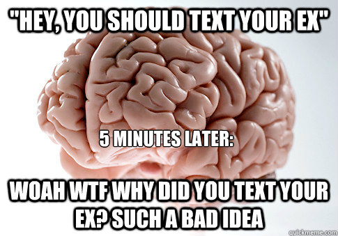 "Hey, you should text your ex" woah wtf why did you text your ex? such a bad idea 5 minutes later: