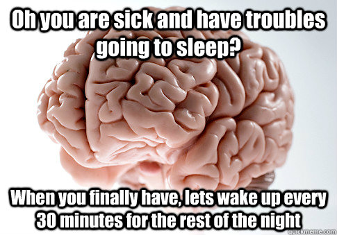 Oh you are sick and have troubles going to sleep? When you finally have, lets wake up every 30 minutes for the rest of the night