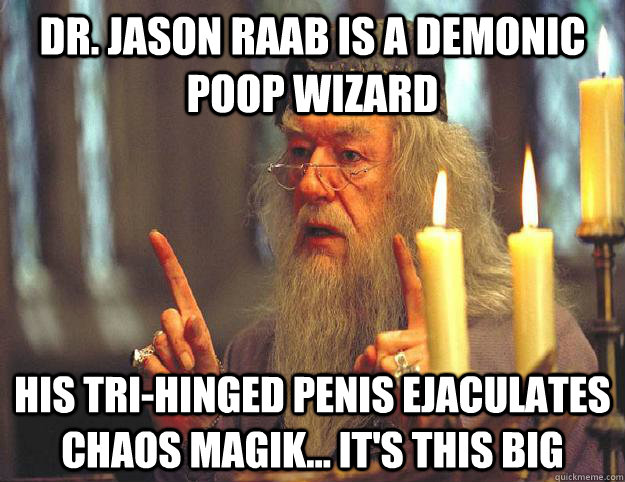 Dr. Jason Raab is a demonic poop wizard his tri-hinged penis ejaculates chaos magik... it's this big