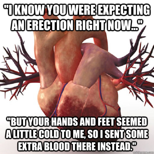 "I know you were expecting an erection right now..." "But your hands and feet seemed a little cold to me, so I sent some extra blood there instead."