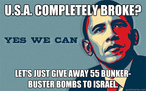 u.s.a. completely broke? let's just give away 55 bunker-buster bombs to israel.