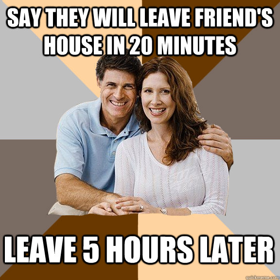 say they will leave friend's house in 20 minutes leave 5 hours later