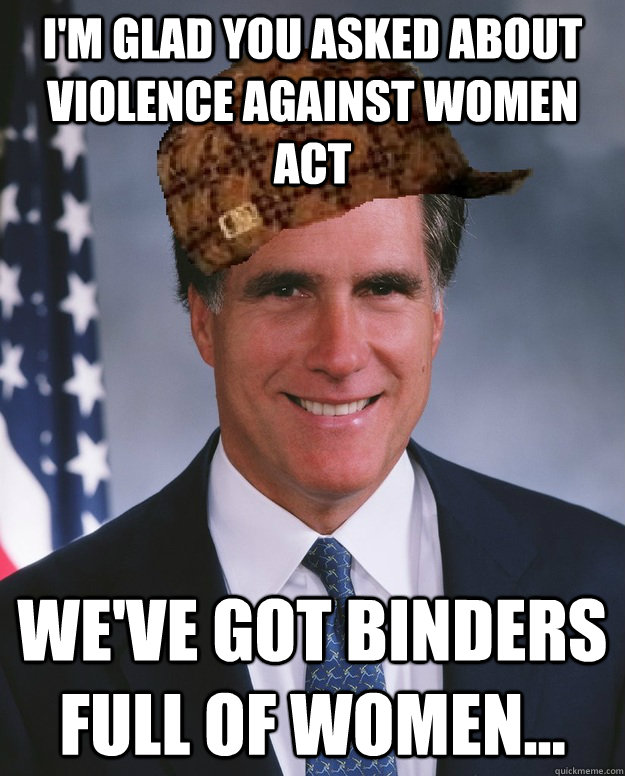I'm glad you asked about Violence against women act we've got binders full of women...