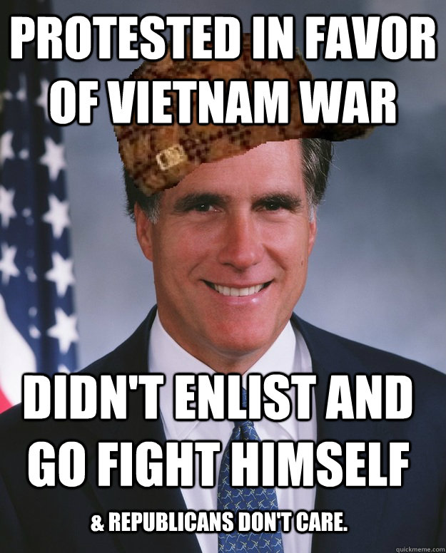 protested in favor of Vietnam War Didn't enlist and go fight himself & Republicans don't care.