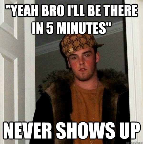 "yeah bro I'll be there in 5 minutes" Never shows up
