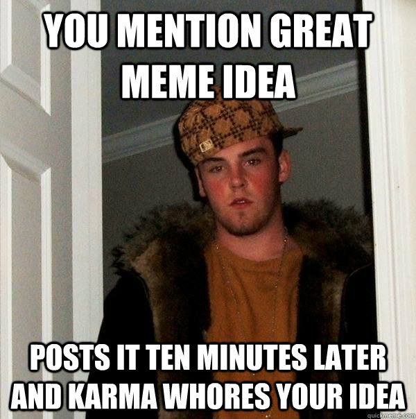 You mention great meme idea posts it ten minutes later and karma whores your idea