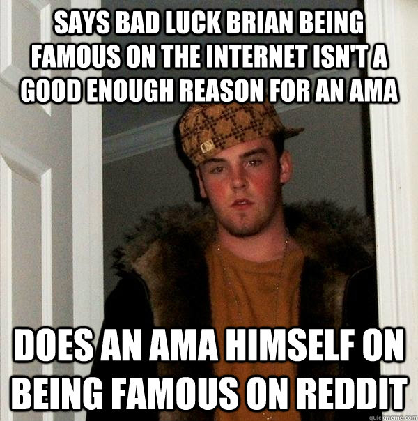 Says Bad Luck Brian being famous on the internet isn't a good enough reason for an AMA Does an ama himself on being famous on reddit
