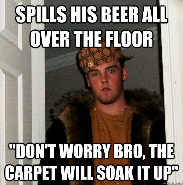 spills his beer all over the floor "Don't worry bro, the carpet will soak it up"