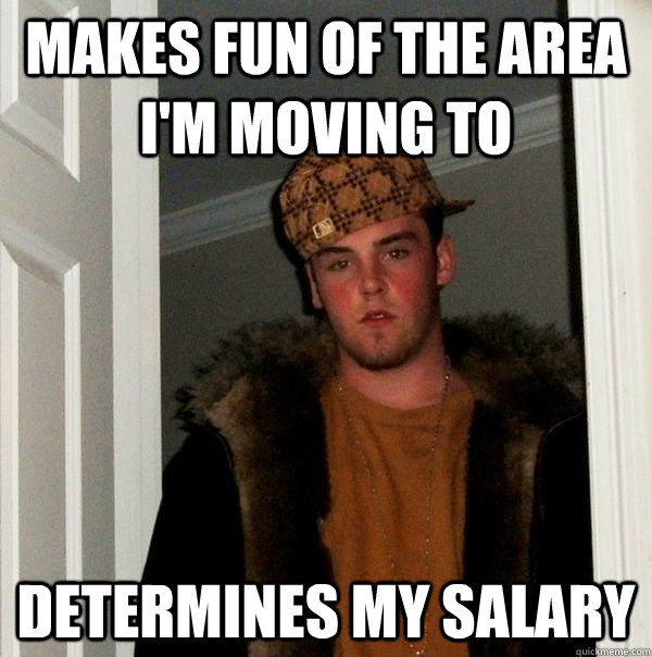 Makes fun of the area I'm moving to Determines my salary