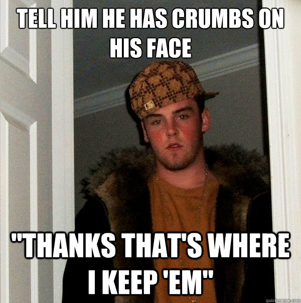 Tell him he has crumbs on his face "Thanks that's where i keep 'em"