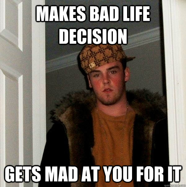 Makes bad life decision Gets mad at you for it