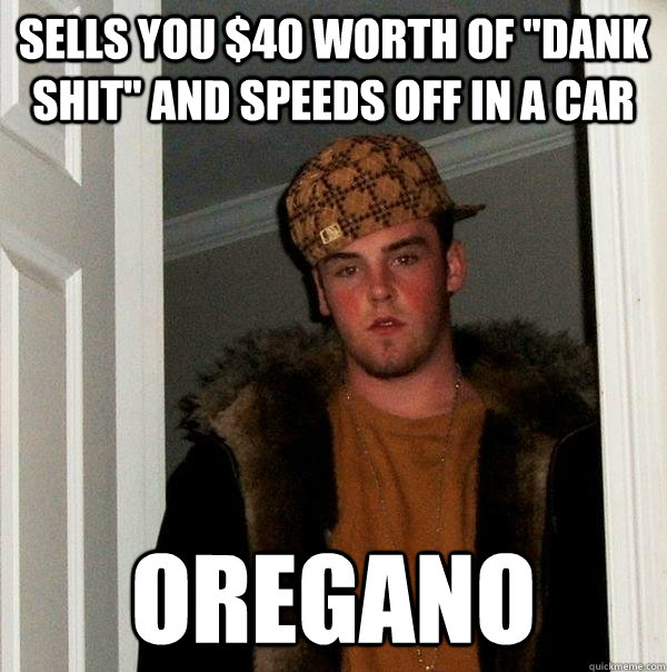 Sells you $40 worth of "dank shit" and speeds off in a car Oregano