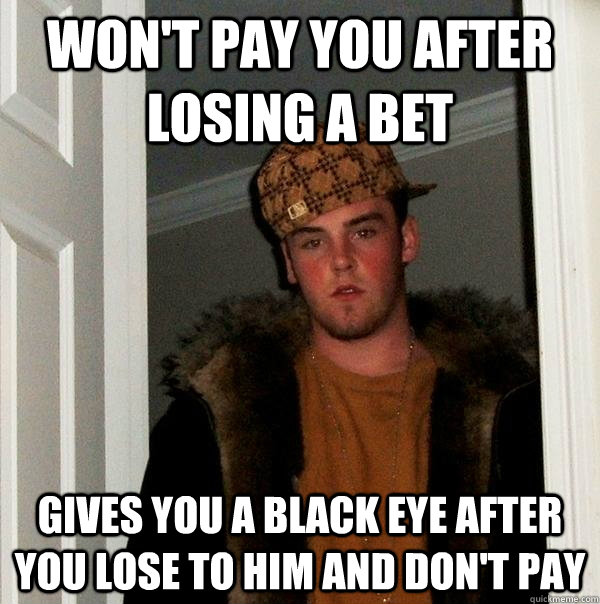 won't pay you after losing a bet gives you a black eye after you lose to him and don't pay
