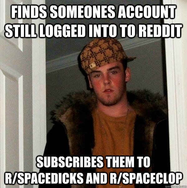 Finds someones account still logged into to reddit subscribes them to r/spacedicks and r/spaceclop