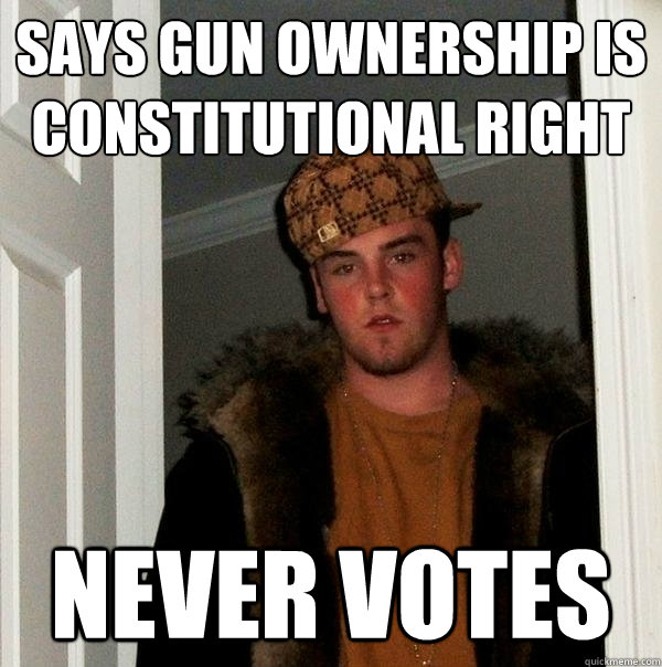 Says gun ownership is constitutional right Never votes