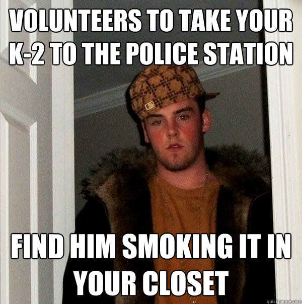 Volunteers to take your K-2 to the police station Find him smoking it in your closet