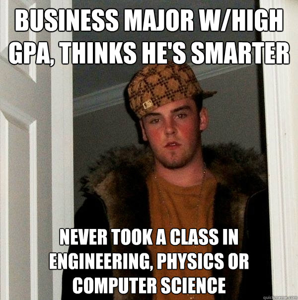Business Major w/High GPA, Thinks he's Smarter Never Took a Class in Engineering, Physics or Computer Science