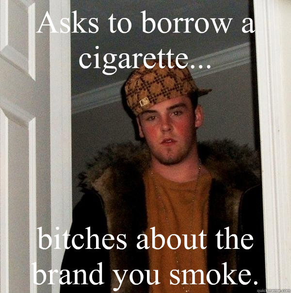Asks to borrow a cigarette... bitches about the brand you smoke.