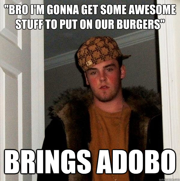 "Bro I'm gonna get some awesome stuff to put on our burgers" BRINGS ADOBO