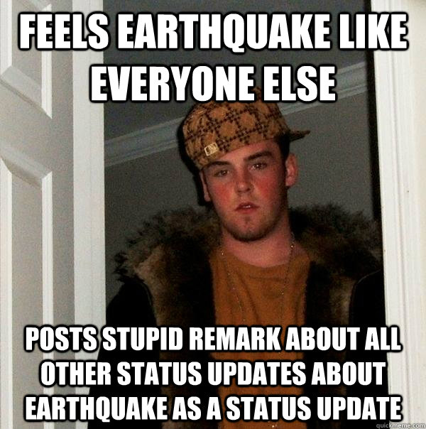 feels earthquake like everyone else posts stupid remark about all other status updates about earthquake as a status update