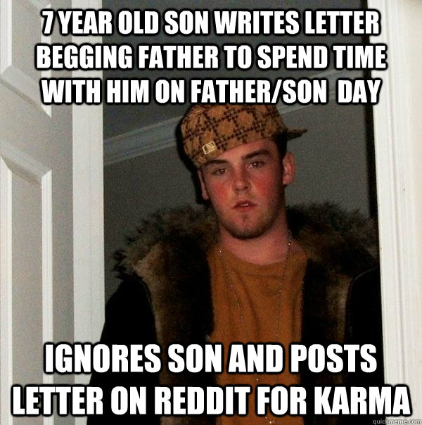7 Year Old Son Writes letter Begging Father to Spend Time With him on Father/Son day ignores son and Posts letter on reddit for karma