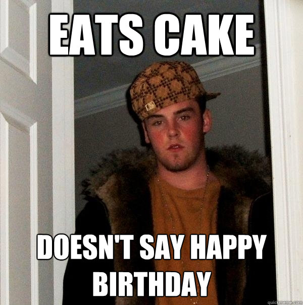 Eats cake Doesn't say happy birthday